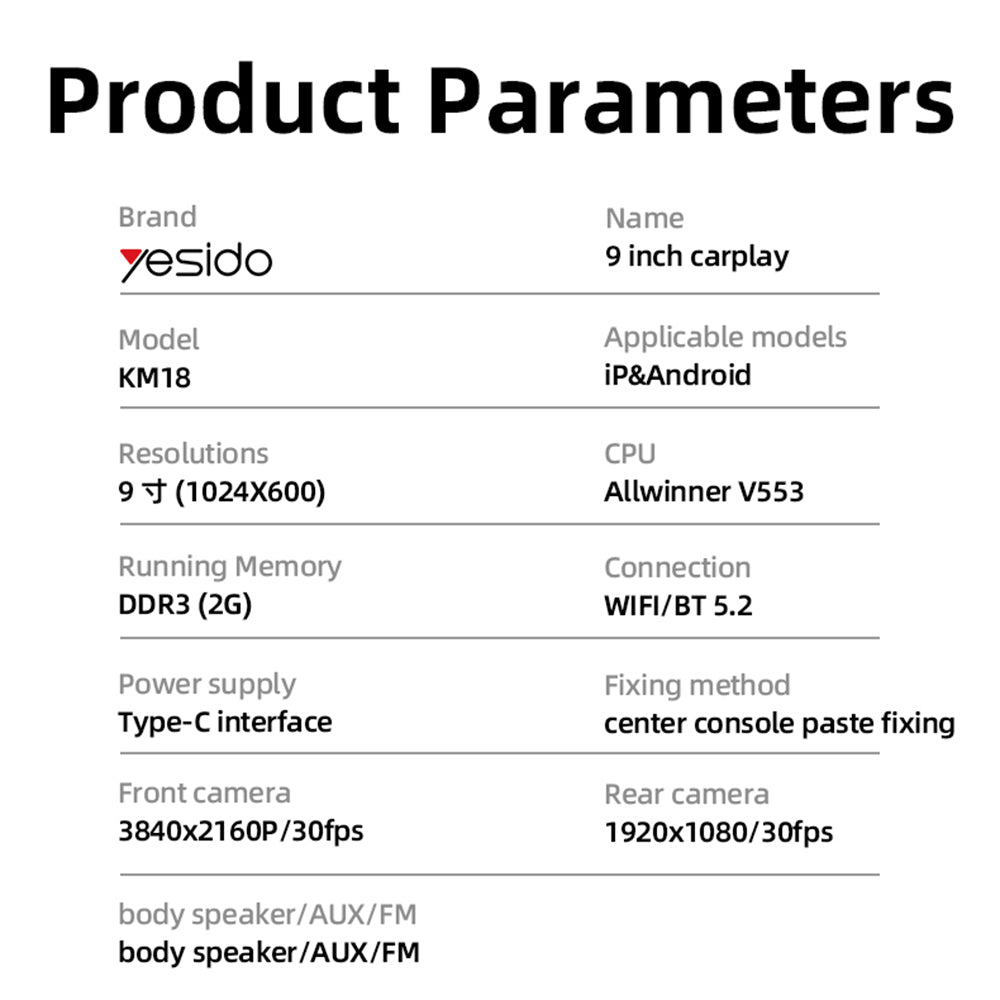 - Funktionen: CarPlay + Android Auto + AirPlay + WiFi + Bluetooth 5.2 + FM + Fahrtenrekorder + AUX