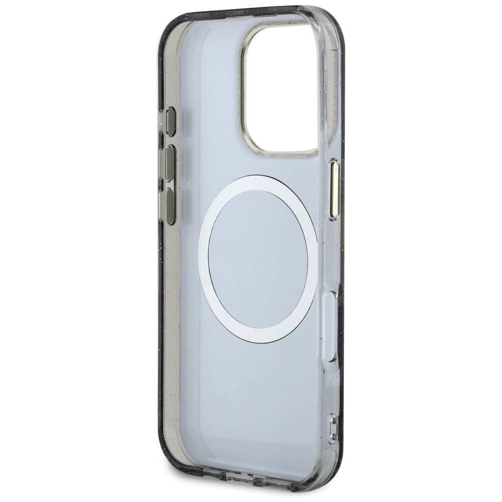 MagSafe Hülle für Apple iPhone 16 Pro, Guess, IML Metal Glitter Flowers Triangle, Schwarz