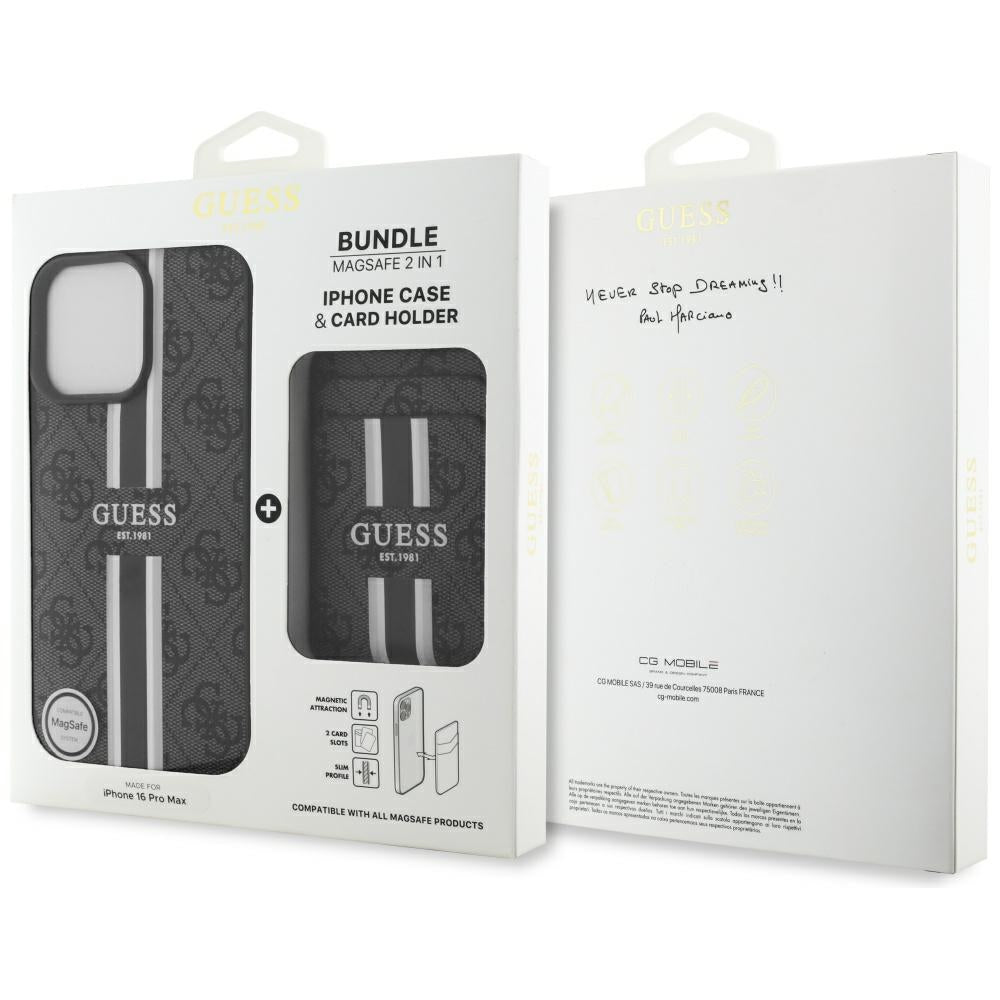 MagSafe Hülle für Apple iPhone 16 Pro Max, Guess, Cardslot 4G Stripes, Schwarz