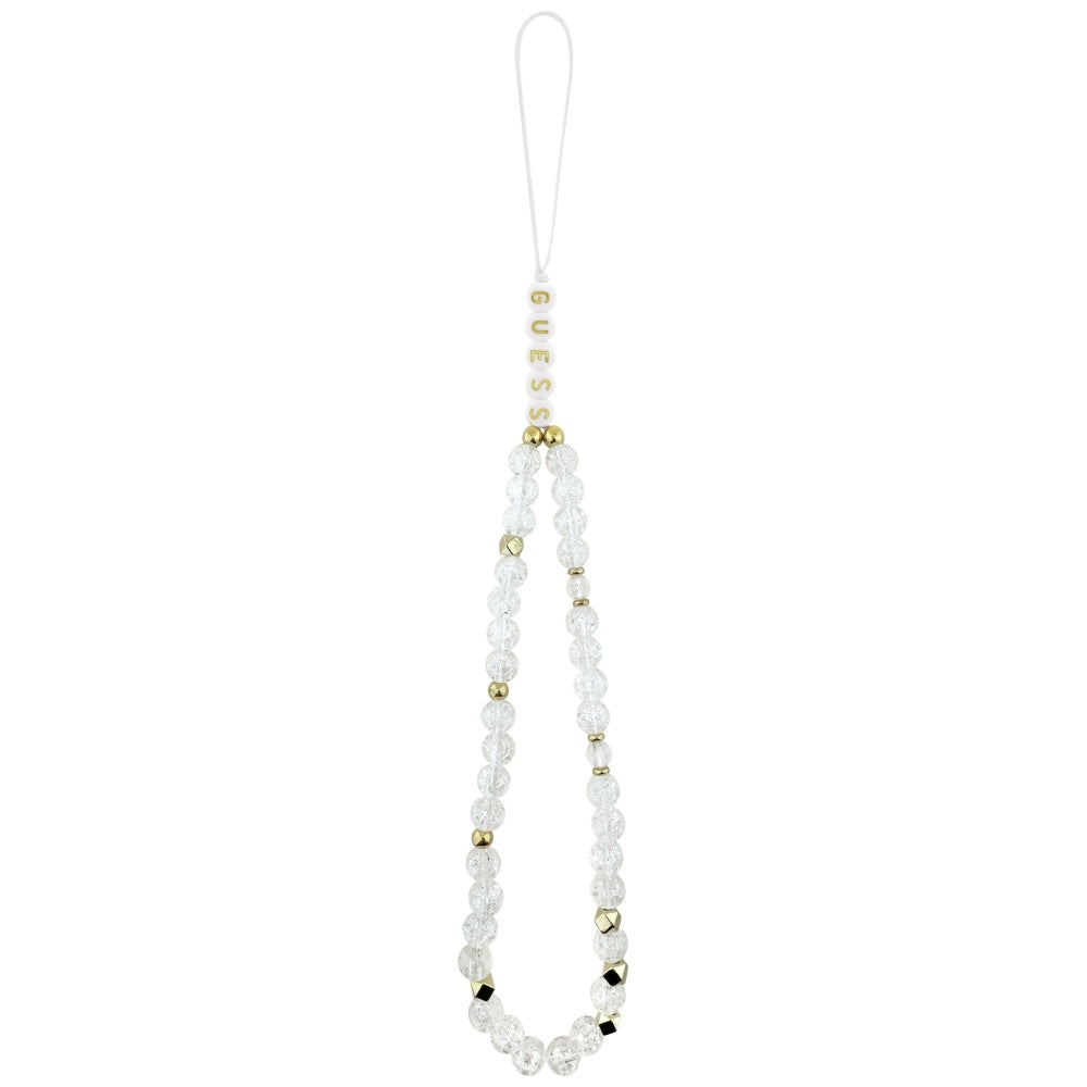 MagSafe Hülle für Apple iPhone 17 Pro Max, Guess, IML Flowers Allover Electroplated with Pearl Strap, Weiß