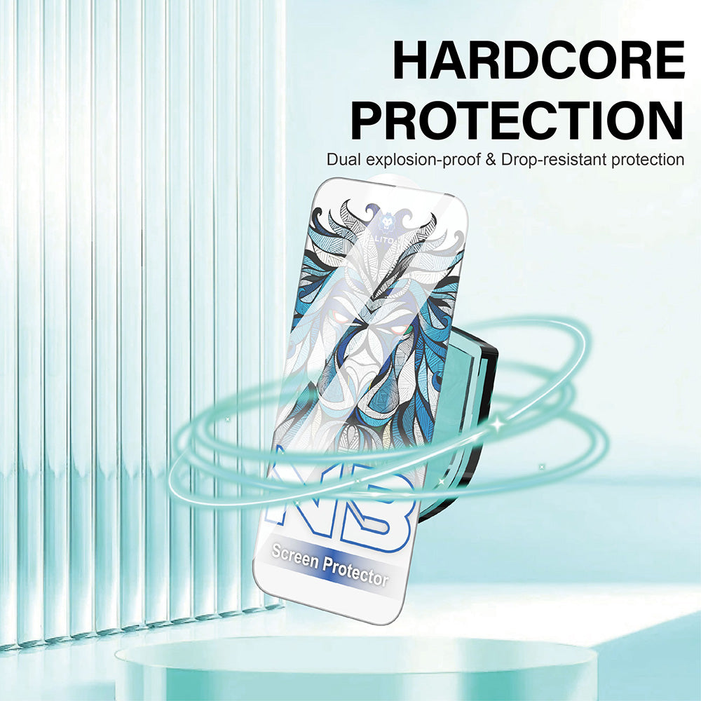 Schutzfolie Lito NB Bildschirm für Apple iPhone 17 / 16 Pro, Gehärtetes Glas, Vollkleber, Schwarz