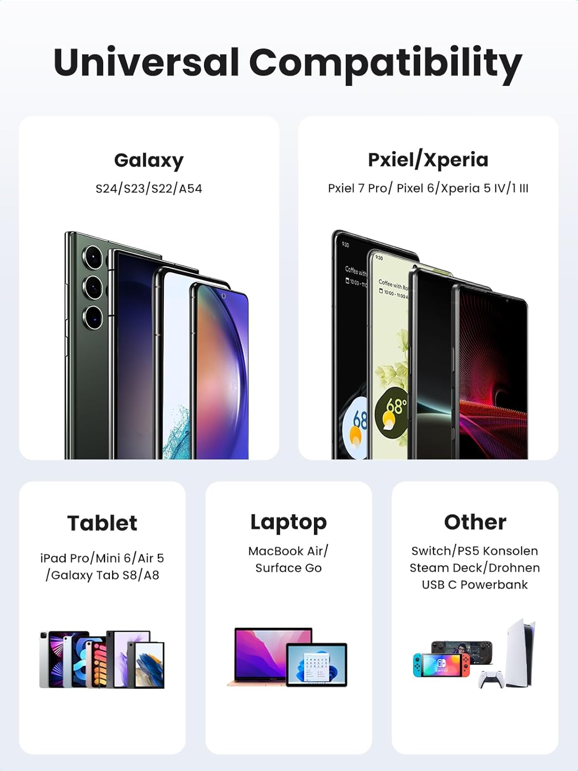 Es ermöglicht die einfache Nutzung des Geräts während des Ladens, egal ob Sie spielen, Videos schauen oder E-Books lesen,