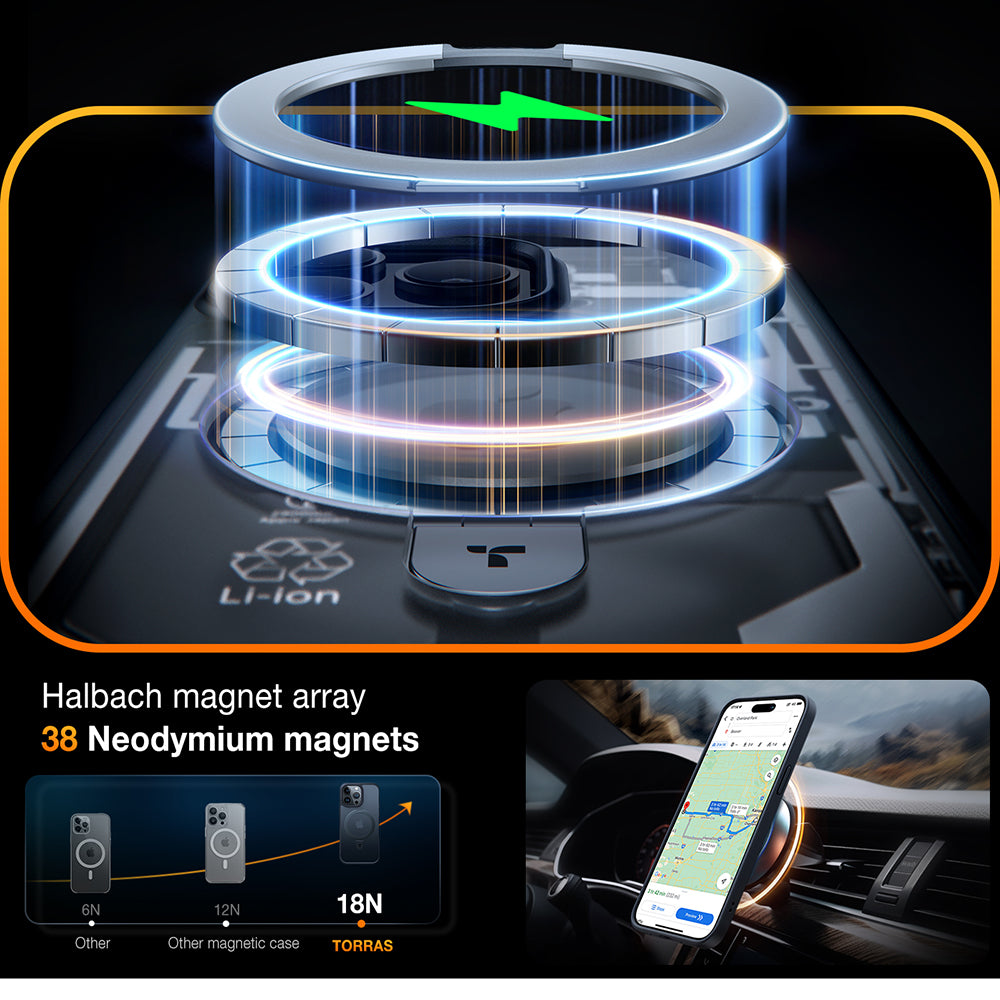 • The Torras case features X-Shock airbags, strong magnets, and a frame composed of multiple layers.