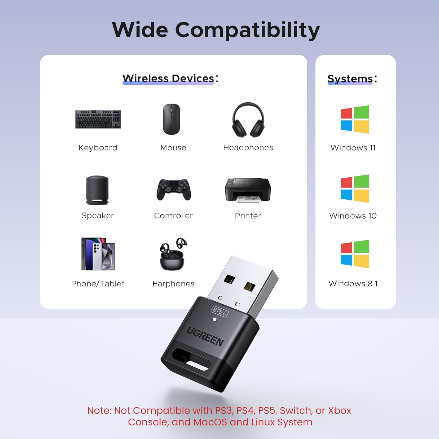aux ordinateurs portables sans Bluetooth intégré. Équipé de la technologie Bluetooth 6.0 (EDR + BLE), il assure des connexions rapides, stables et économes en énergie,