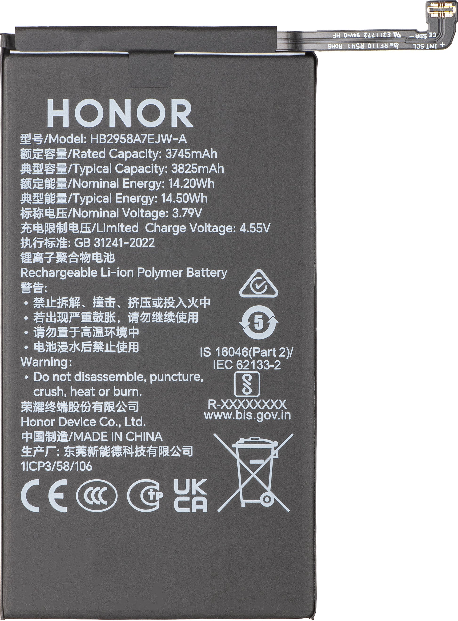 Batterie Honor Magic V5, HB245872EJW-A, Service Pack 0235AQBM