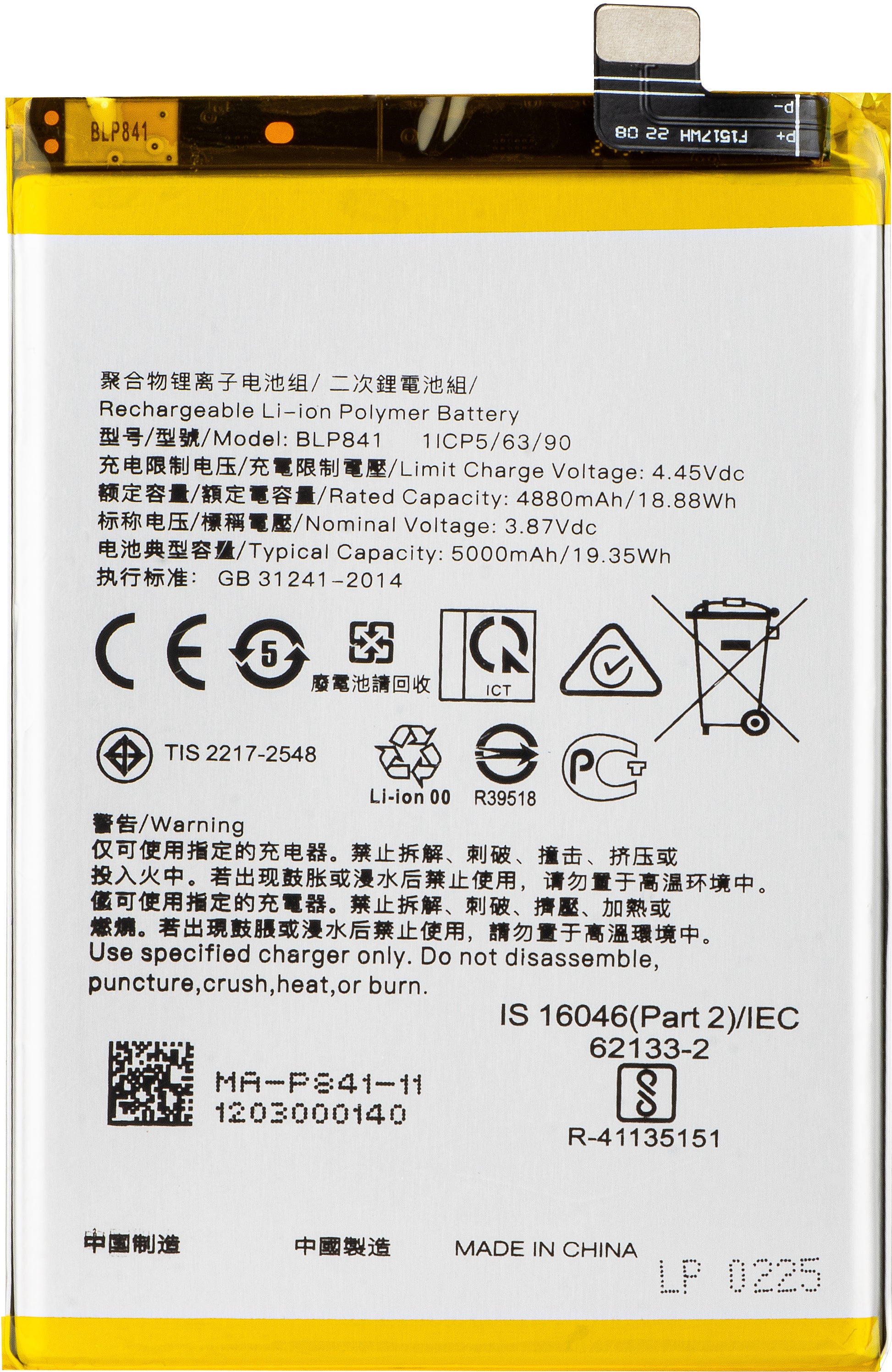 | Capacité | 4890mAh |