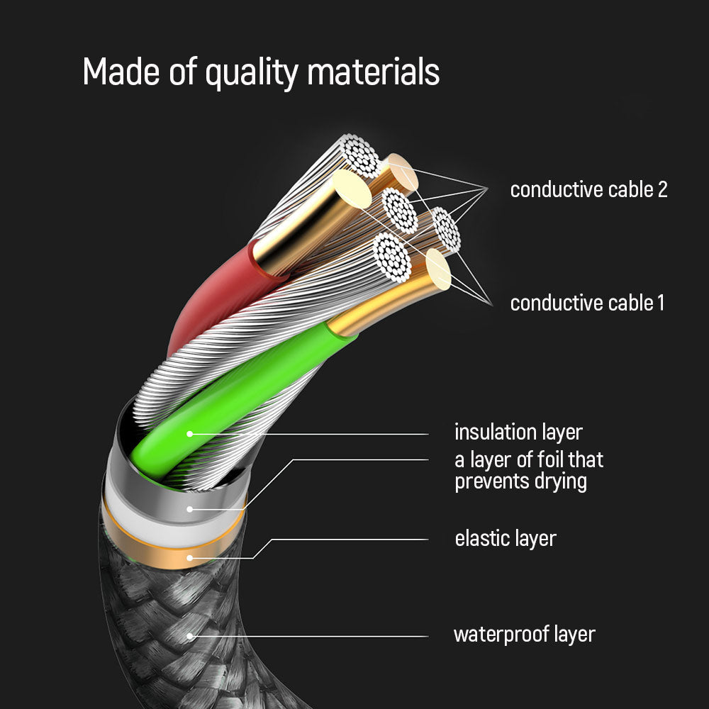 le câble permet une charge efficace avec des adaptateurs de 18W, 20W, 25W, 30W, 65W ou 87W. Le tissu durable protège contre l'usure,