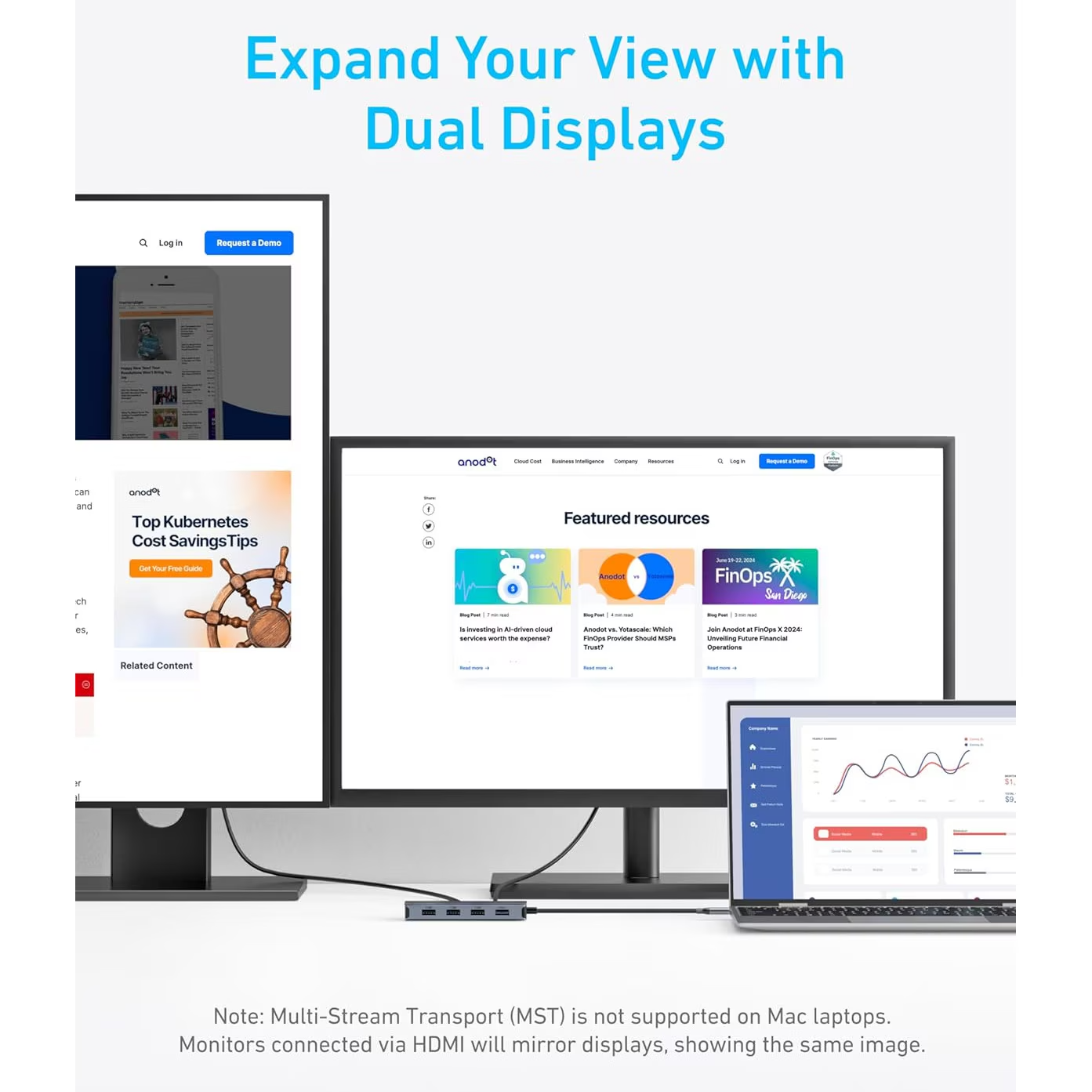 Le hub USB-C Anker 7-en-1 est la solution idéale pour ceux qui ont besoin de vitesse, de connectivité étendue et de productivité maximale, que ce soit au bureau,