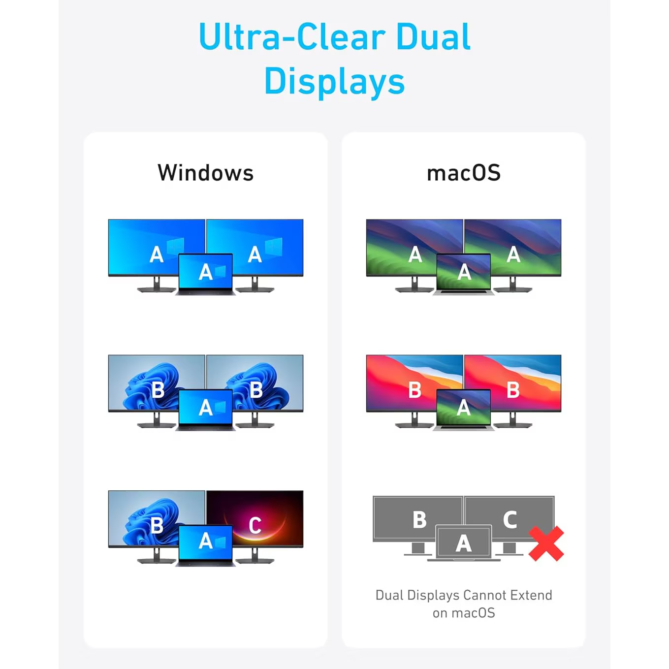 des sorties vidéo doubles, une charge rapide, un transfert de données ultra-rapide et une compatibilité étendue avec les appareils modernes. Avec 2 ports HDMI,