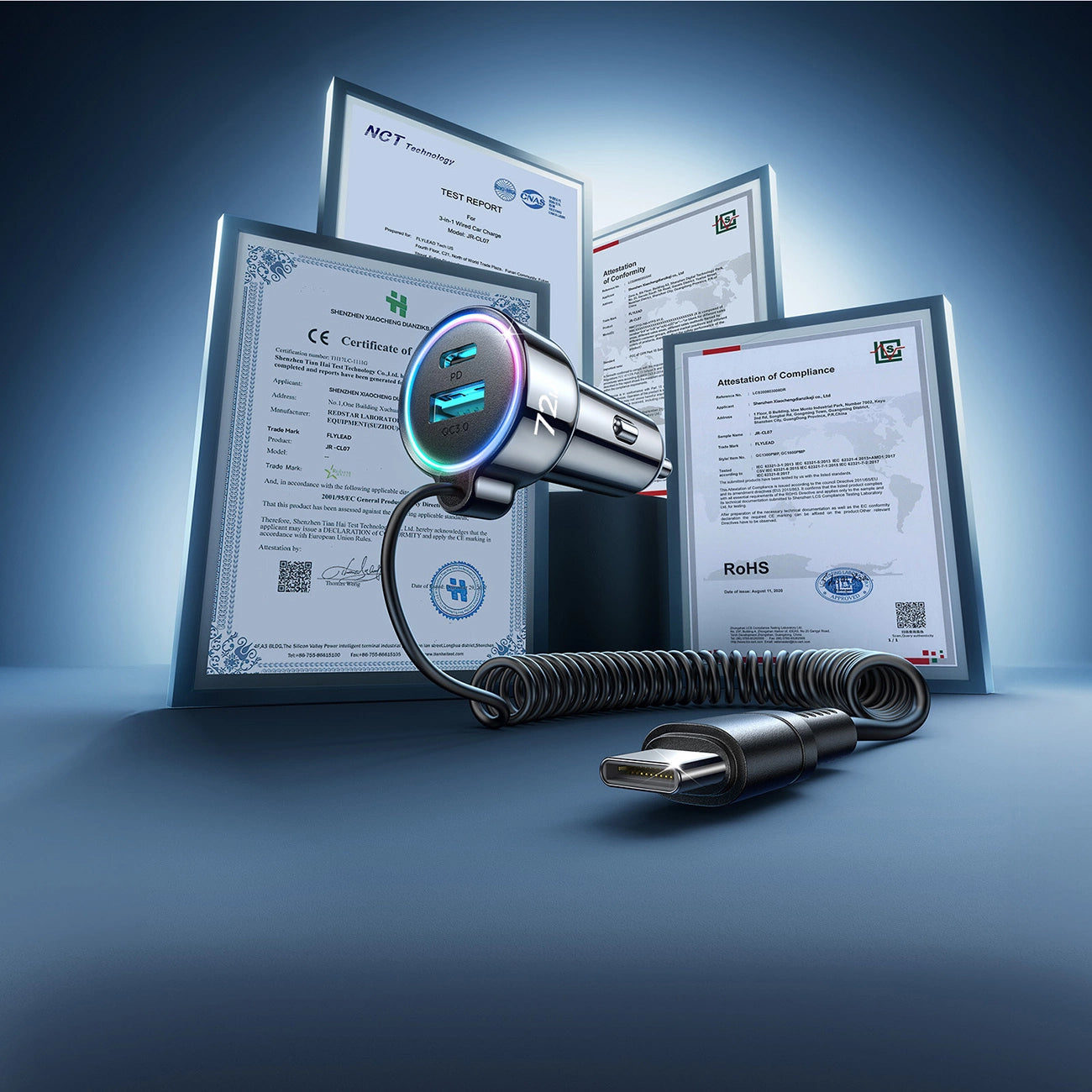 Joyroom JR-CL07 is de perfecte 3-in-1 auto-oplader voor bestuurders die snel en veilig meerdere apparaten tegelijk willen opladen.