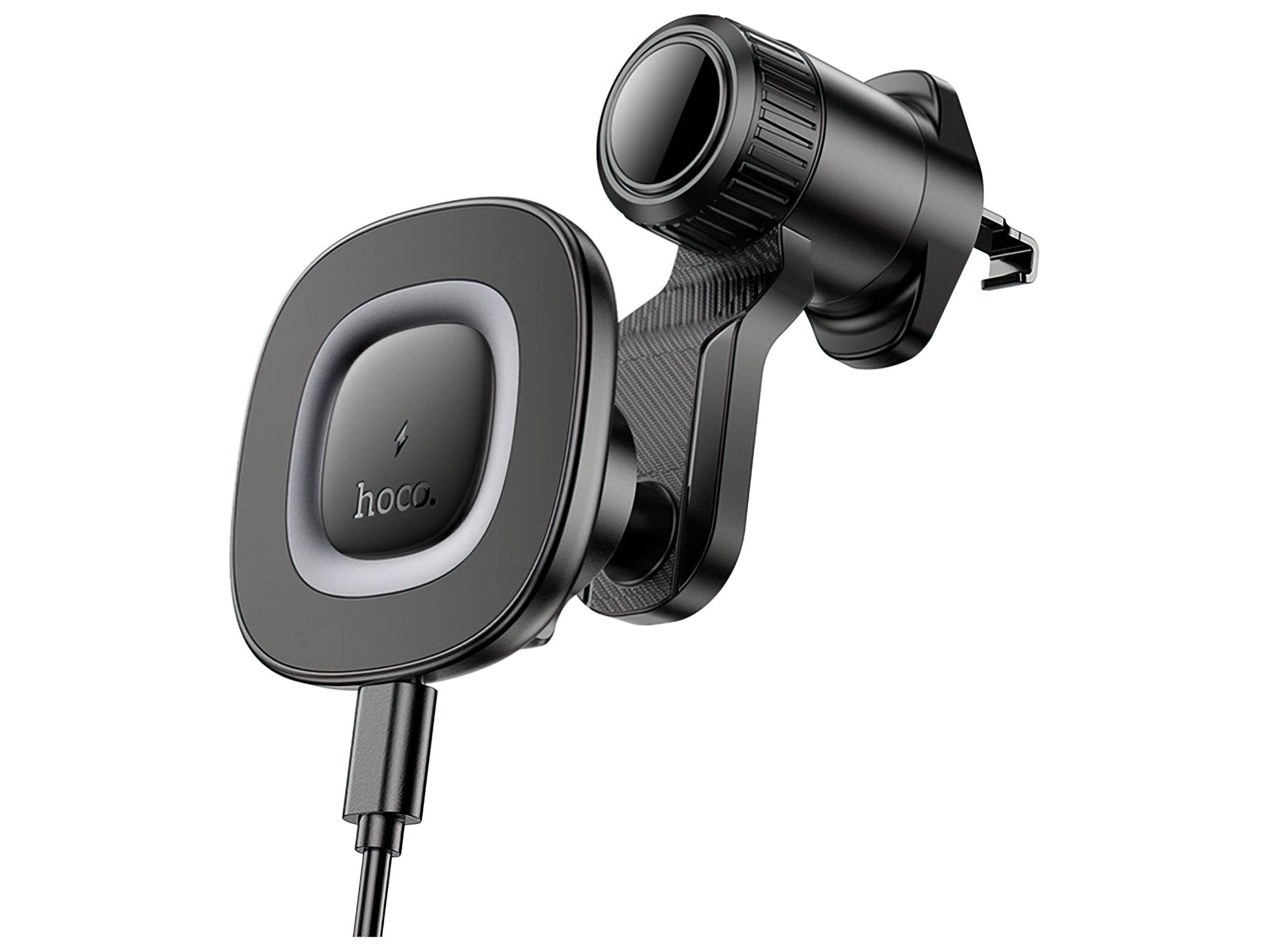 HOCO HW30 is een autohouder met geïntegreerde draadloze oplader, ontworpen om direct op het ventilatierooster te worden gemonteerd,