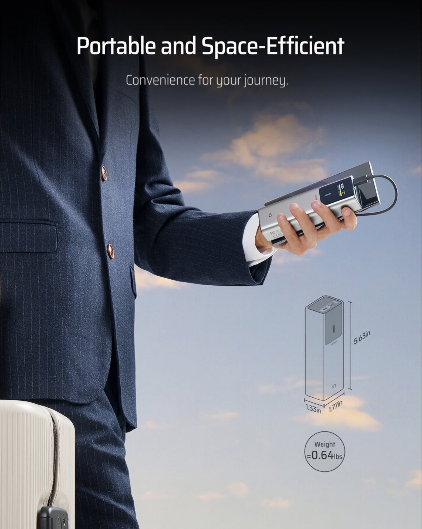 Met een totaal vermogen van maximaal 150W, USB-C uitgang tot 120W en USB-A uitgang tot 33W, kan het snel zelfs de meest veeleisende apparaten opladen, en biedt