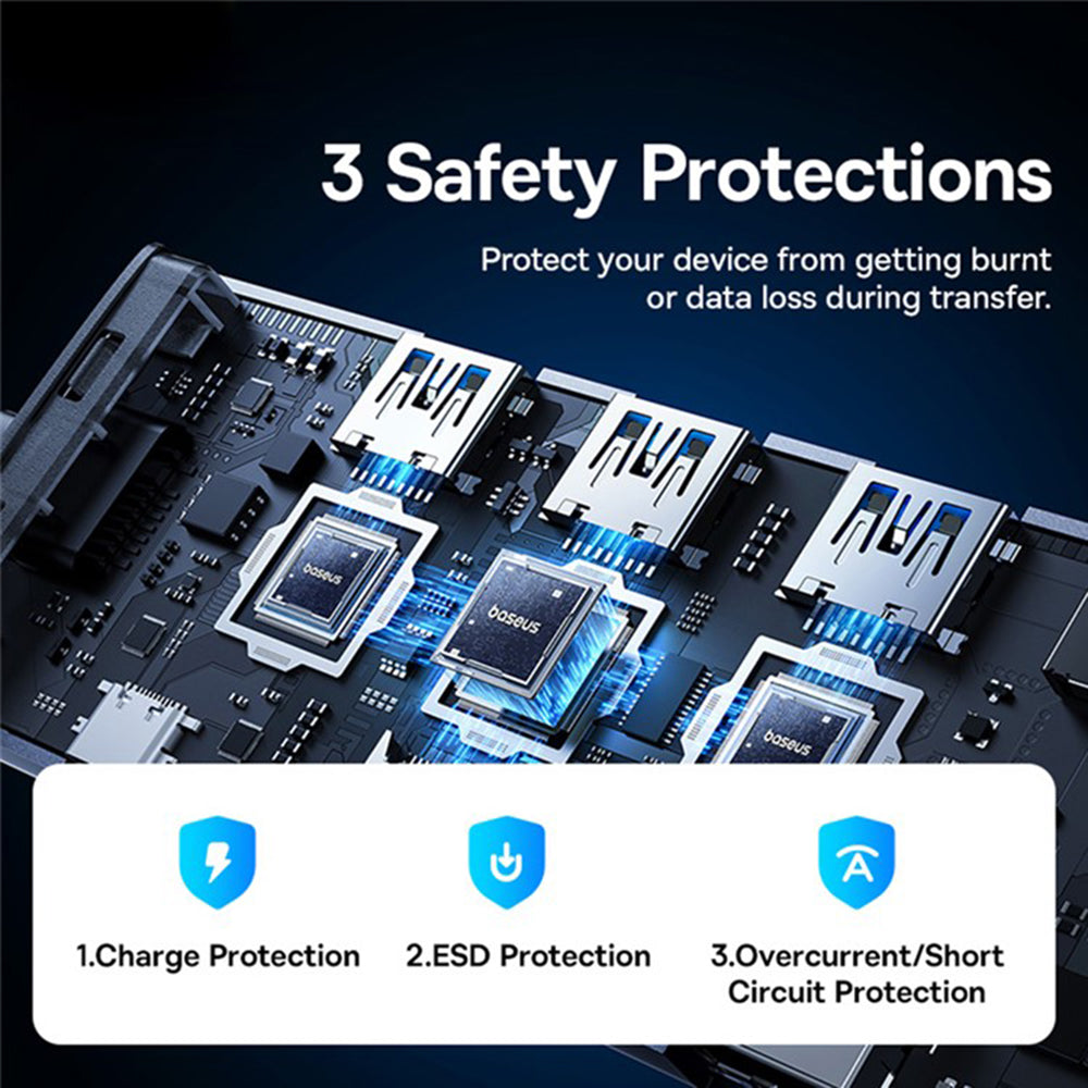 terwijl de USB-C PD3.0-poort snel opladen mogelijk maakt met een vermogen tot 100 W (85 W effectief voor het apparaat), zodat je apparatuur altijd klaar is voor gebruik. Bovendien voorkomt de Baseus BCT-technologie oververhitting en beschermt tegen
