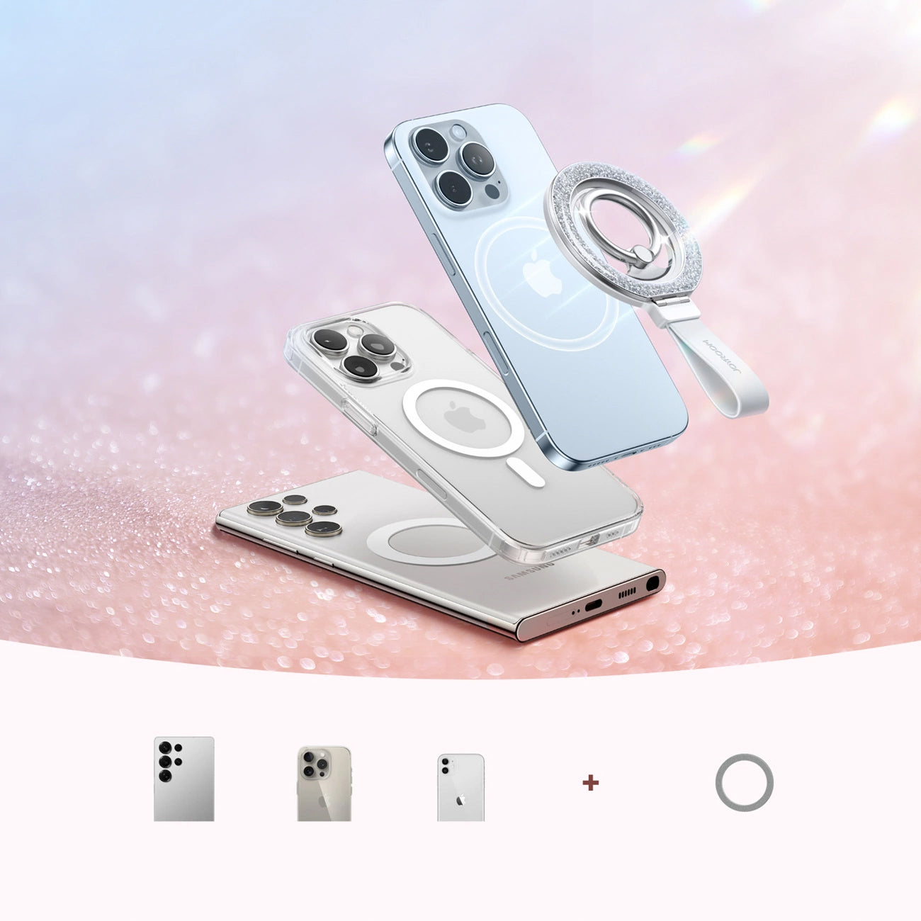 krachtige N56 magneten, hecht de steun direct aan MagSafe-compatibele telefoons en magnetische hoesjes, en de meegeleverde metalen ring maakt