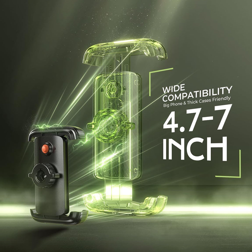 Deze houder zorgt voor een uiterst stabiele grip, ook op ruw terrein of bij hoge snelheden. Het vergrendelingsmechanisme elimineert het risico van glijden of vallen van de telefoon.