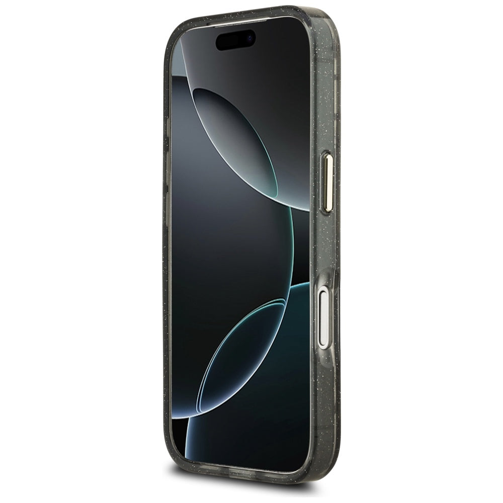 MagSafe hoes voor Apple iPhone 17 Pro, Guess, IML Metal Glitter Flowers Triangle, Zwart