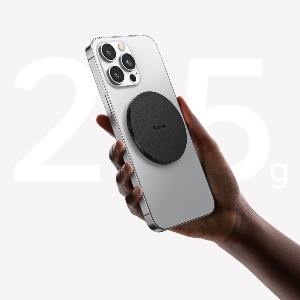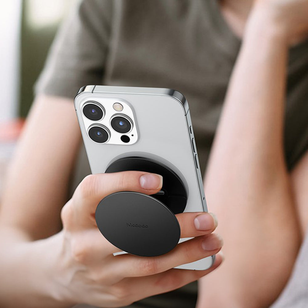 Magnetische houder die perfect op de telefoon past, zonder extra volume of gewicht toe te voegen.
