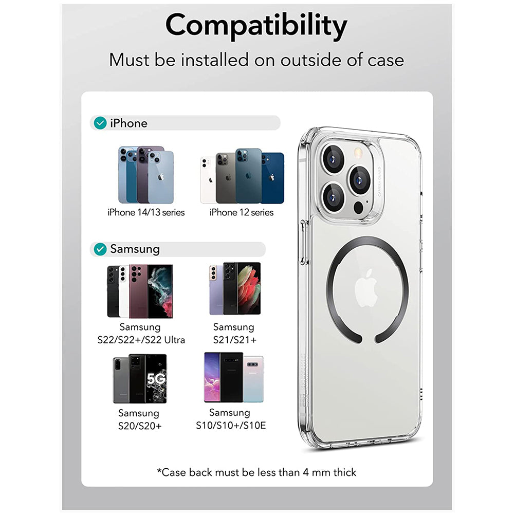 Of je nu een iPhone of een Samsung hebt, dit product is voor jou gemaakt. Verander een gewoon hoesje in een hoesje dat MagSafe opladen faciliteert. De ring met sterke magneten is geweldig.