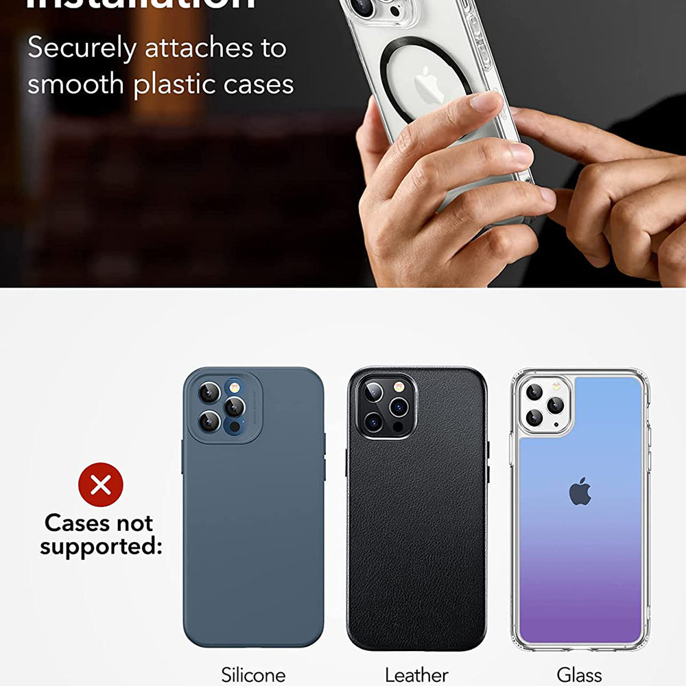 Heb je een voorkeur voor een bepaald type hoesje, maar heeft deze geen MagSafe-ring? Geen probleem. Je kunt het zelf bevestigen. Bestel de magnetische ESR-ring en heb de vrijheid om de gewenste behuizing te kiezen.