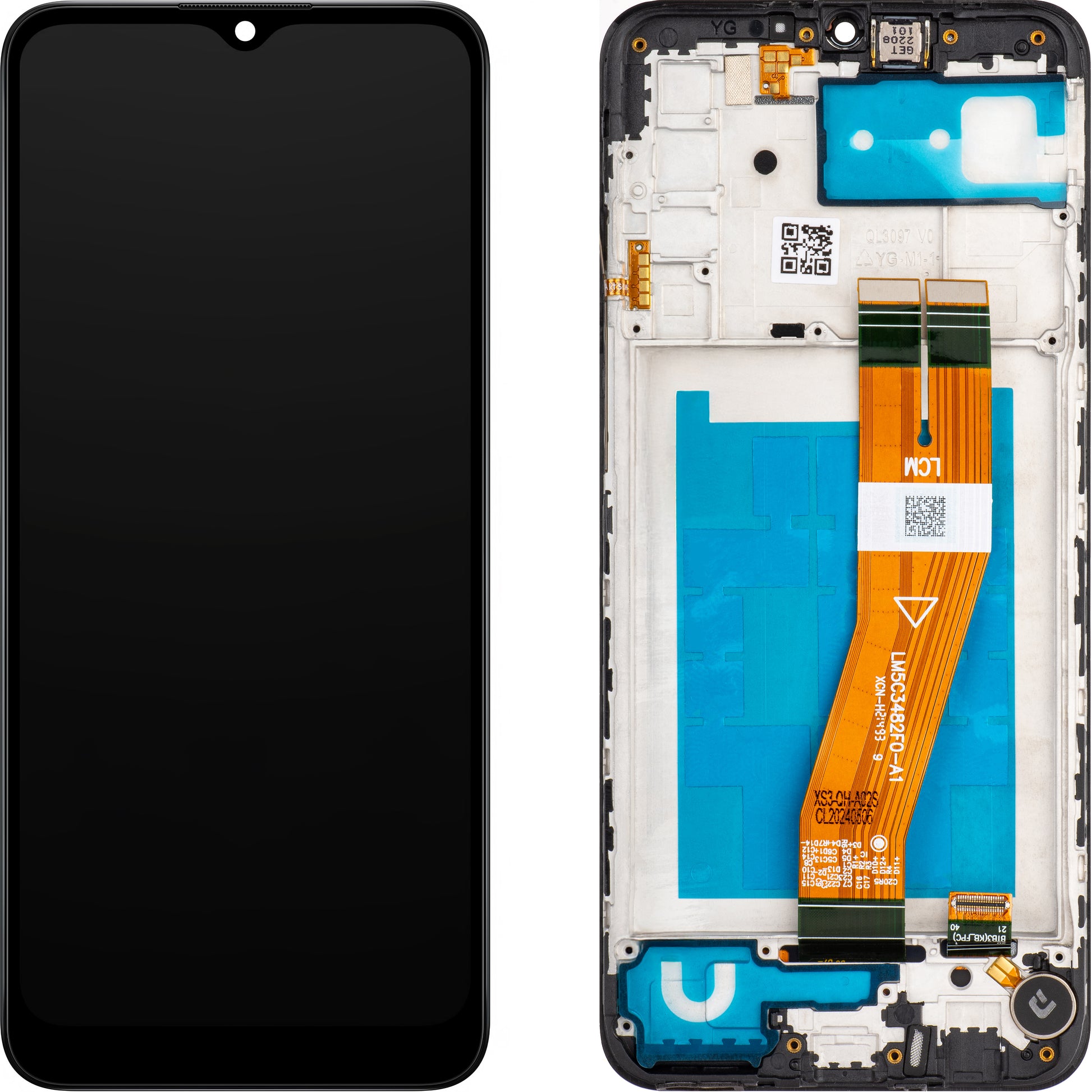 De displaymodule is uitgerust met een rand, luidspreker, trilmotor en knoppen aan de zijkant met microcontact.